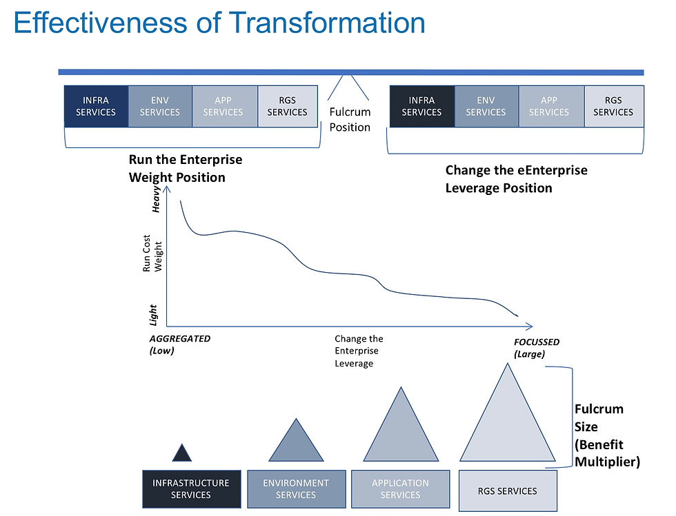 It is impossible to shift a large weight (run the business costs) positioned closest to the pivot point, using the smallest fulcrum (benefit multiplier), with a smaller weight (change leverage) positioned equally close to other side of the pivot point.